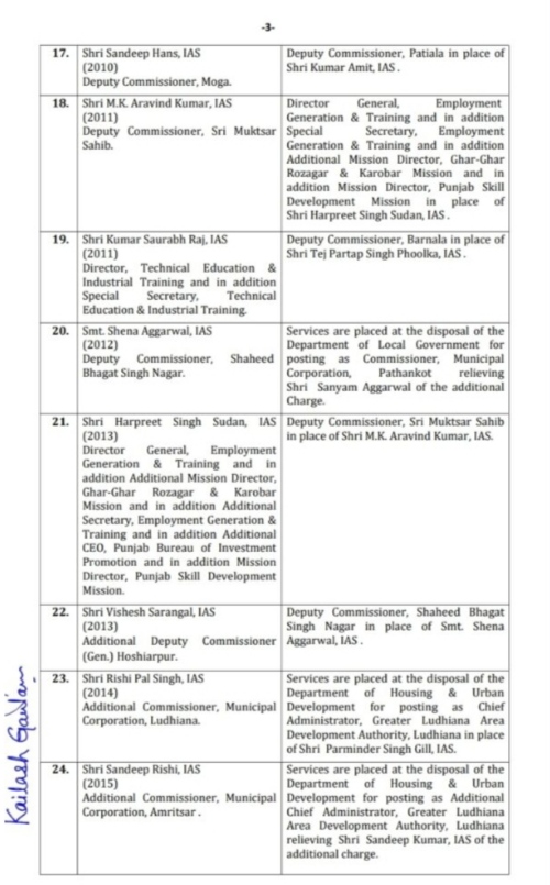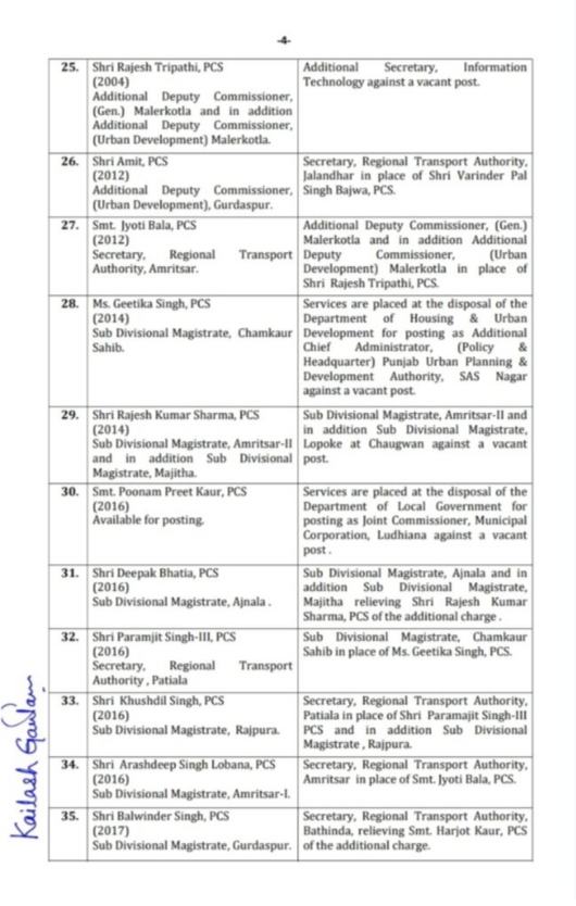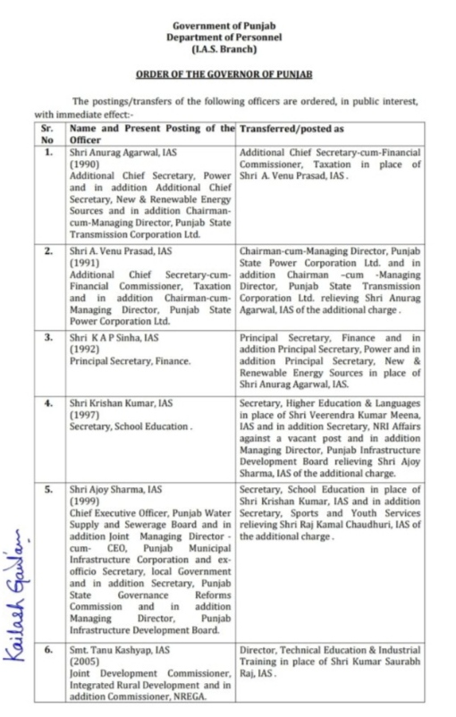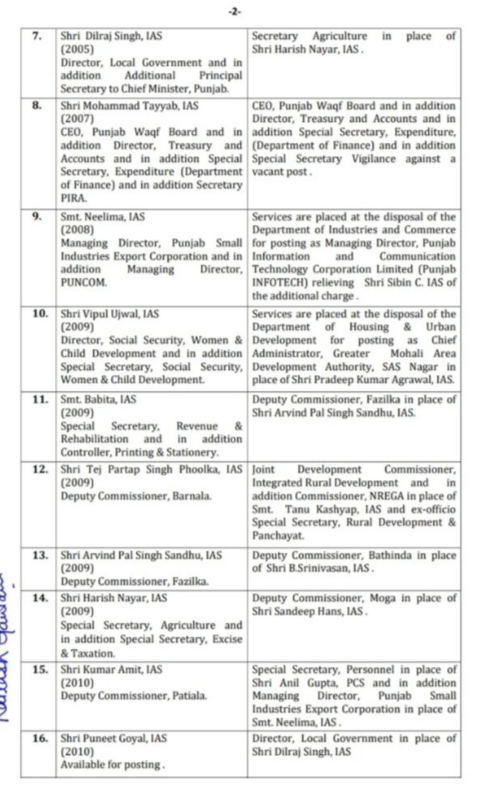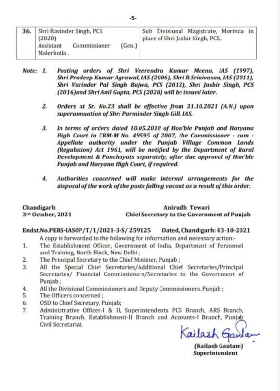 चंडीगढ़ : पंजाब के CM चरणजीत सिंह चन्नी ने 36 आईएएस और पीसीएस अफसरों का ट्रांसफर कर दिया। इनमे कई जिलों के डिप्टी कमिश्नर व वरिष्ठ अधिकारी भी शामिल हैं। इसके अलावा रीजनल ट्रांसपोर्ट अथॉरिटी आरटीए भी बदले गए। वहीँ माना जा रहा है कि यह बदलाव पंजाब में विकास कार्यों को लेकर किया गया है।