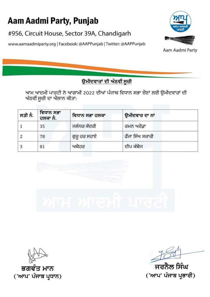 जालंधर : आपको बता दे कि आम आदमी पार्टी (आप) ने कुछ समय पहले ही पार्टी ज्वाइन करने वाले रमन अरोड़ा को विधानसभा हलका सेंट्रल से उम्मीदवार घोषित कर दिया है। वहीँ आप हाईकमान की तरफ से जारी की गई आठवीं सूची में रमन अरोड़ा का नाम है। बता दे कि पार्टी ने उम्मीदवारों की आठवीं लिस्ट जारी कर दी है।