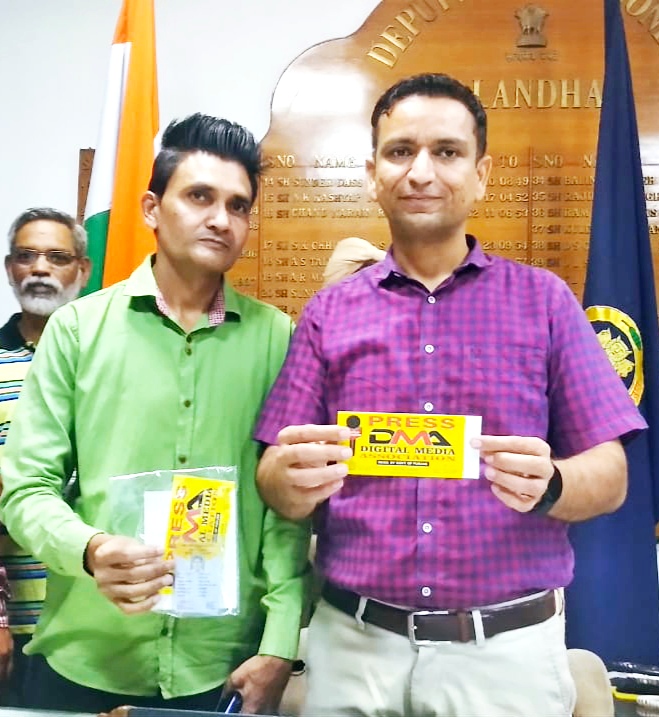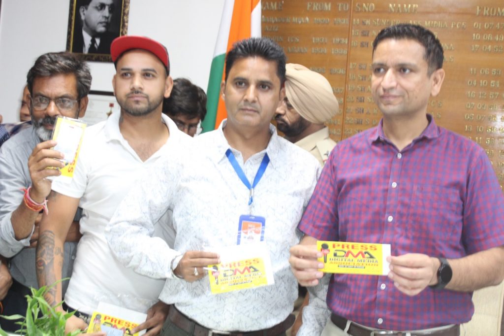 जालंधर ( अनुराग ) : 150 से ज्यादा पत्रकारों की प्रसिद्ध संस्था Digital Media Association (Regd) के चैयरमैन अमन बग्गा व अध्यक्ष शिंदरपाल सिंह चाहल की अध्यक्षता में आज जालंधर के डिप्टी कमिश्नर (डीसी) श्री घनश्याम थोरी ने अपने करकमलों द्वारा DMA एसोसिएशन के सदस्यों के आई डी कार्ड और व्हीकल स्टिकर रिलीज किये।