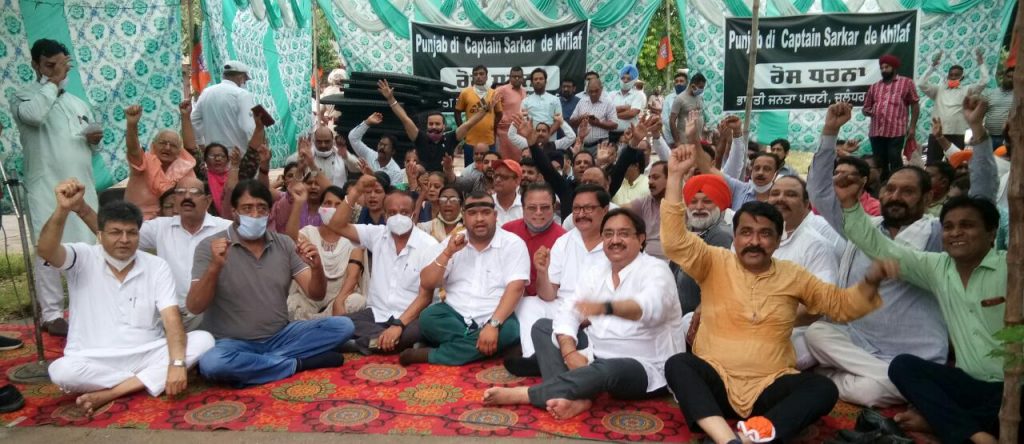 भाजपा जालंधर शहरी द्वारा कैप्टन सरकार के विरुद्ध डीसी दफ्तर के बाहर लगाया धरना, शरारती तत्वों द्वारा भाजपा के कार्यकर्ताओं पर हमला करने पर कैप्टन को ठहराया दोषी