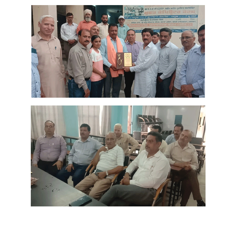 जालन्धर : आज Employees United Forum(regd).Basti Danishmandan Jalandhar की General body की मीटिंग श्री गुरु ravidass mandir katra mohalla में हुई. जिसमें Forum के चुनाव सर्वसम्मति से हुए. Dr.R.L.Bassan, चेयरमैन, master Sh. Rattan Lal Kundal Vice Chairman,श्री मदन लाल President, Sh.Sukhdev Angural Gen.Sec., श्री गुरु प्रसाद को finance Secretary चुना गया.श्री रवि कुमार ASI को प्रेस Secretary. Pattern श्री Hoshiar Singh aur Sh. छोटू राम sarangal.अंत मे श्री रवि कुमार ASI Punjab Police को उनकी retirement पर सरोपा और सन्मान चिन्ह देकर सन्मानित किया गया.