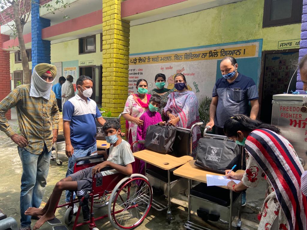 जालंधर (अनुराग ) : जिला शिक्षा अफसर (एलेमेंटरी ) श्री रामपाल सिंह , डिप्टी जिला शिक्षा अफसर स. गुरचरण सिंह मुल्तानी दी अगुवाई में समग्र शिक्षा अभियान जालंधर की तरफ से दिव्यांग बच्चों का सामान वितरण कैंप 9-8-2021 को सरकारी सीनियर सेकंडरी स्कूल लाडोवाली रोड में लगाया गया। जिसमे 37 दिव्यांग बच्चों को उनकी जरुरत के अनुसार व्हील चेयर ,हियरिंग ऐड, MR किट ,कैलिपर ,cp चेयर आदि मुहैया करवाया गया।