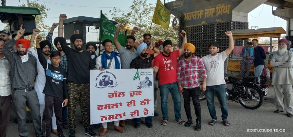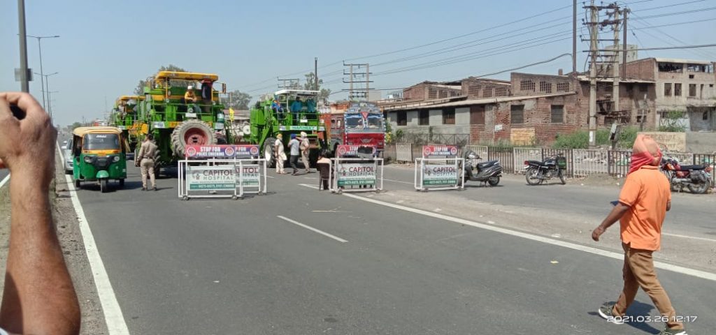 जालंधर ( अनुराग ): केंद्र सरकार के कृषि सुधार कानूनों के विरोध में संयुक्त किसान मोर्चा (SKM) के भारत बंद के आह्वान पर हाइवे और शहर के भीतर भी किसानों ने जाम लगाया। शहर के प्रमुख BMC चौक पर किसान संगठनों ने आवाजाही पूरी तरह से ठप कर दी है। इसके अलावा शहर भर में लगातार रैलियां निकालकर किसान ने दुकानों व व्यापारिक संस्थानों को बंद करवाया। किसानों के बंद की वजह से 6 ट्रेनें नहीं चल सकी। हाइवे पर कई जगह किसानों ने प्रदर्शन किया इसकी वजह से बस सर्विस भी बंद हो गई।