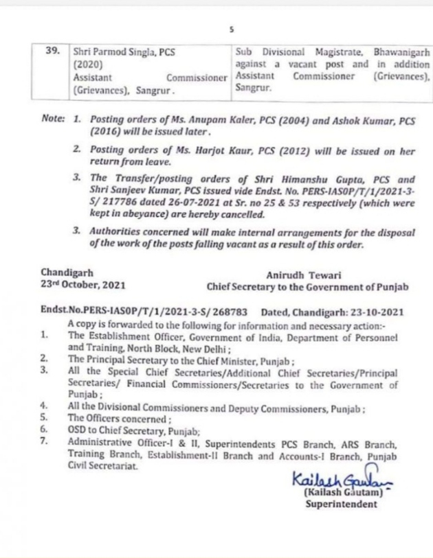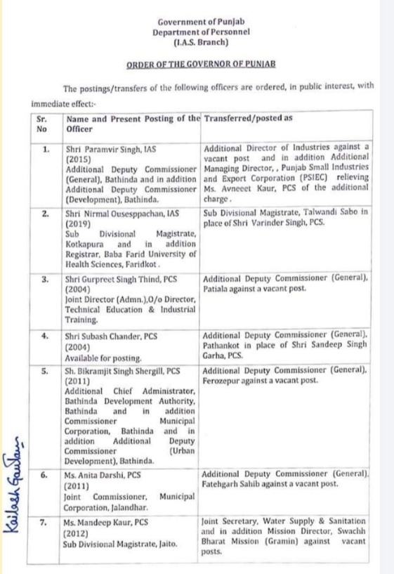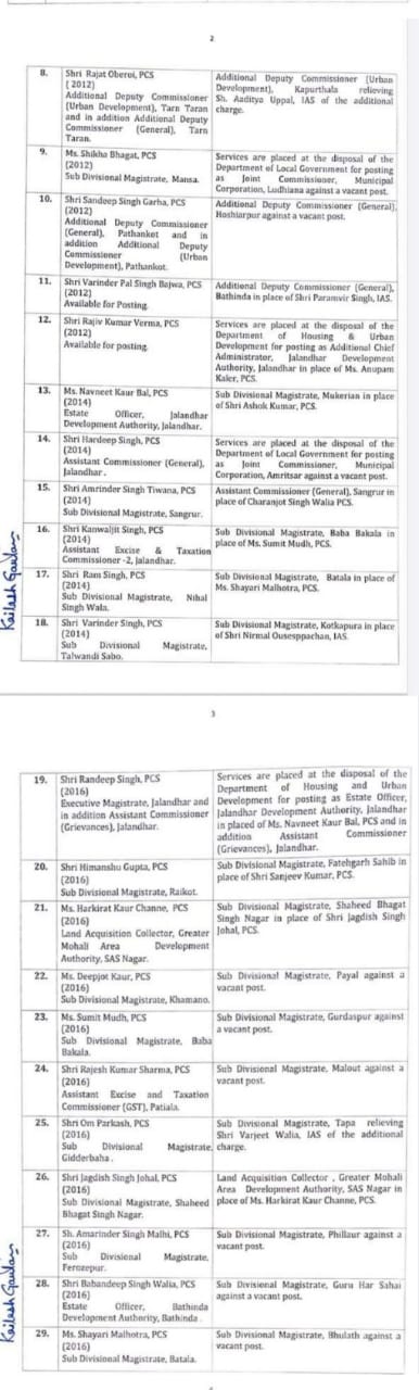 Big action by Election Commission, transfer of SSP in 5 districts of Punjab including Jalandhar पंजाब में कई IAS / PCS अधिकारीयों के हुए तबादले , पढ़े सारी जानकारी Post author:Anurag Kondal Post published:October 24, 2021 Post category:Jalandhar Post comments:0 Comments चंडीगढ़ : पंजाब में मुख्यमंत्री चरणजीत चन्नी की सरकार द्वारा बड़ा प्रशासनिक फेरबदल किया है। पढ़े सारी लिस्ट :- Tags: Many IAS / PCS officers transferred in Punjab, read all the information Read more articles Previous PostBig Breaking News : जालंधर , अमृतसर व लुधियाना के पुलिस कमिश्नर का हुआ ट्रांसफर , पढ़े सारी जानकारी Next Postबड़ी खबर : पंजाब में अब आपको शाम 5 बजे के बाद पेट्रोल-डीजल नहीं मिलेगा , पढ़े सारी जानकारी You Might Also Like जालंधर में पंजाब रोडवेज की बस ने कई लोगों को कुचला, एक की हुई मौत January 22, 2025 जालंधर में शार्ट सर्किट से घर में लगी आग, कीमती सामान जलकर राख March 27, 2021 जालंधर में रविवार शाम को विदा हुई दुल्हन और अगली दोपहर मायके लौटी लाश, परिजनों का आरोप -रात भर टॉर्चर कर मारा लड़की को April 26, 2021 Leave a Reply Cancel replyCommentEnter your name or username to comment Enter your email address to comment Enter your website URL (optional)