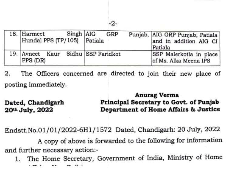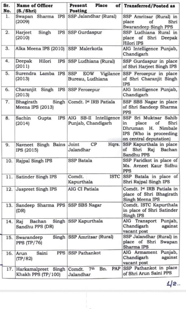 Major reshuffle in Punjab Police, 91 IPS-PPS officers transferred स्वर्णदीप सिंह बने जालंधर के नए SSP, 19 IPS/PPSअधिकारियों का हुआ ट्रांसफर, पढ़ें लिस्ट Post author:Anurag Kondal Post published:July 20, 2022 Post category:Punjab Post comments:0 Comments Tags: 19 IPS/PPS officers transferred, read list, Swarndeep Singh became the new SSP of Jalandhar Read more articles Previous Postपंजाब सरकार ने 19 IPS, 9 PPS अधिकारियों का किया ट्रांसफर , पढ़े लिस्ट You Might Also Like आनंद कारज को लेकर श्री अकाल तख्त साहिब का सख्त आदेश जारी October 16, 2023 BIG NEWS : पंजाब के कांग्रेसी सांसद को मिली बम से उड़ाने की धमकी February 26, 2023 पंजाब के CM चरणजीत चन्नी ने कैबिनेट बैठक में किये कई बड़े एलान , पढ़े जानकारी October 11, 2021 Leave a Reply Cancel replyCommentEnter your name or username to comment Enter your email address to comment Enter your website URL (optional)