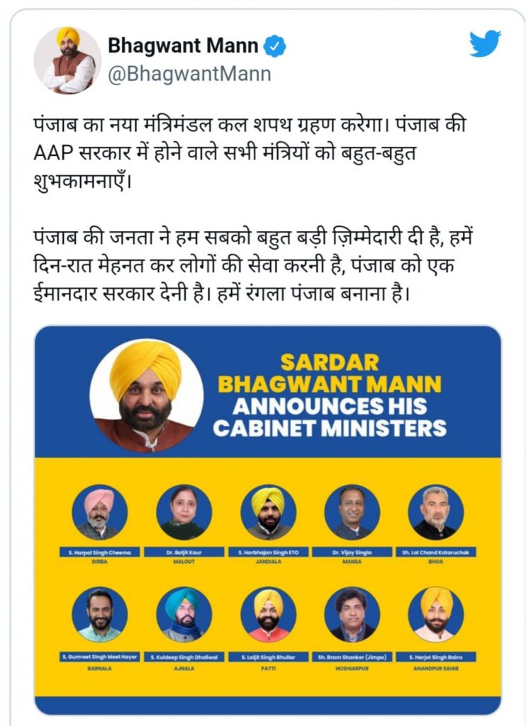 भगवंत मान के कल शपथ ग्रहण करने वाले मंत्रियों के नाम हुए जारी, पढ़े लिस्ट